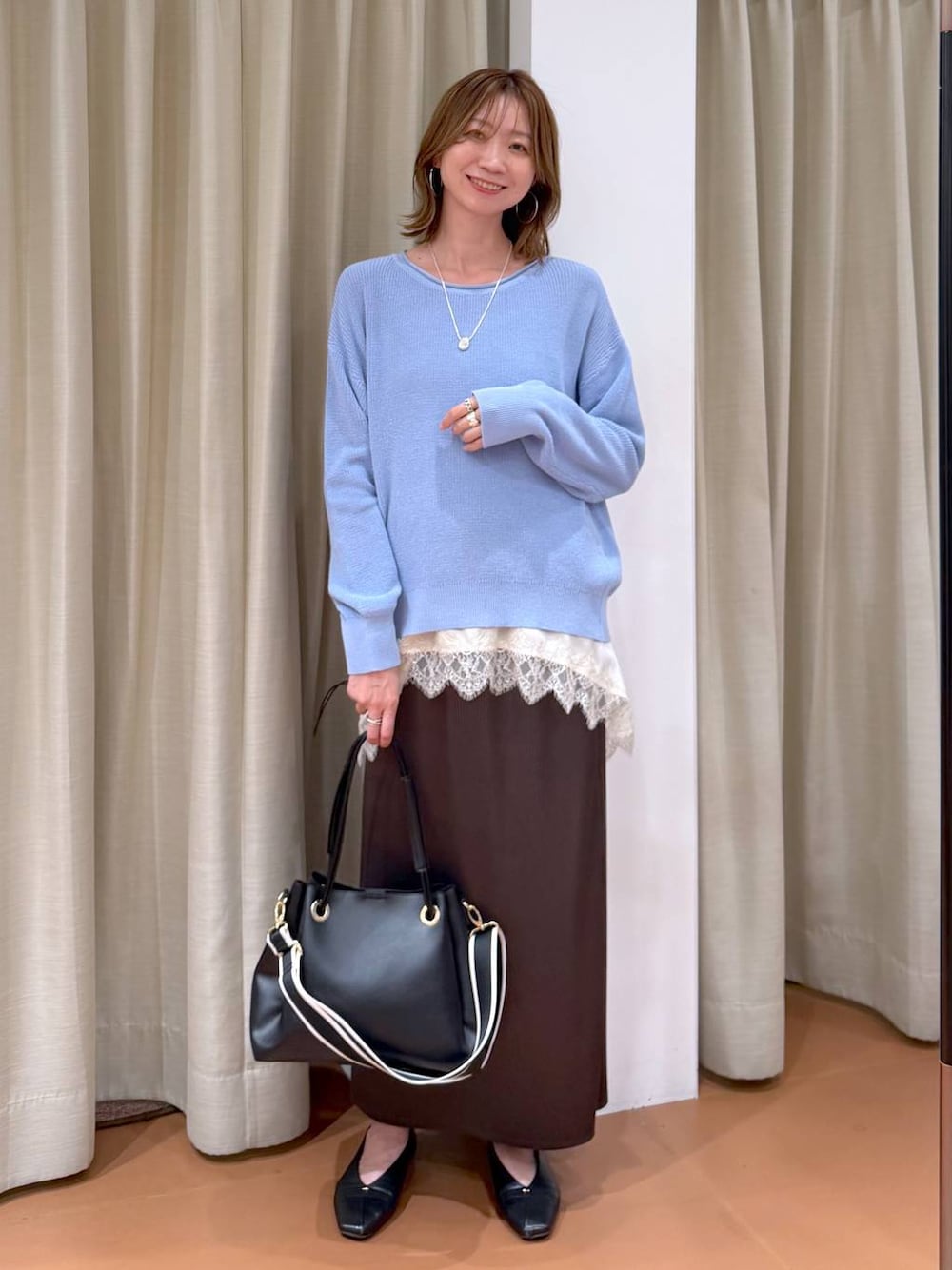 nami(Elura/ヤエチカ)(Elura 八重洲地下街)のニット/セーター「ミドルゲージゆるニット/589490」を使ったコーディネート