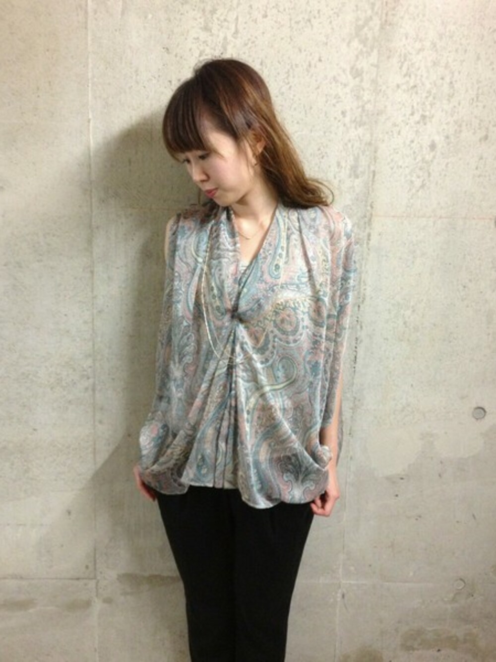 tiensecoute本部1のシャツ/ブラウス「ぺイズリーシフォンタック2WAYブラウス」を使ったコーディネート