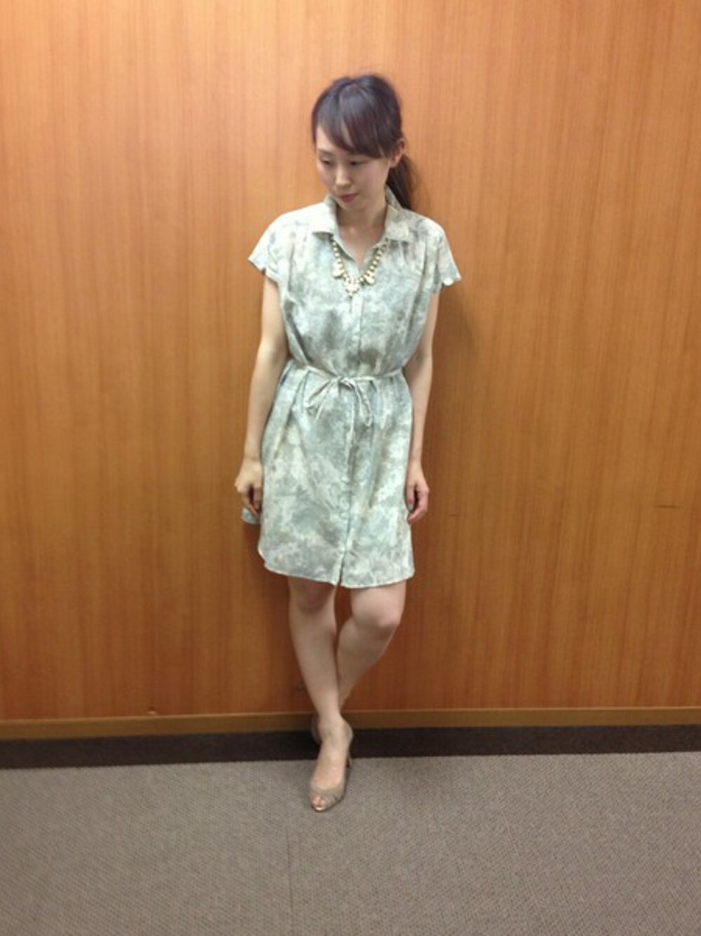ビジューネックレスとヒールパンプスでカッチリめにスタイリングしてみました。