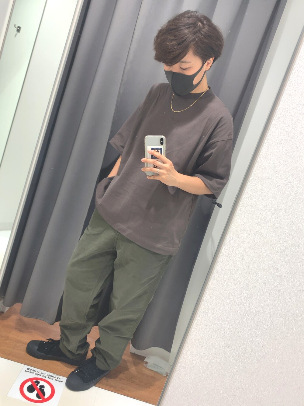 着用サイズ トップス:S ボトム:M ※だいぶ腰履きにしてます パンツはユニクロのワイドフィットワークパンツ、 スニーカーはGU×UNDERCOVERのものです。