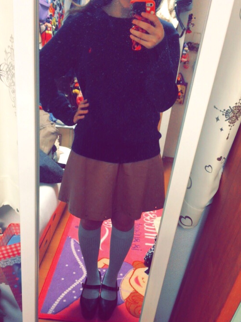 私服にハイソックスって、小学生の時以来だから、少し恥ずかしいけど履いてみた✨