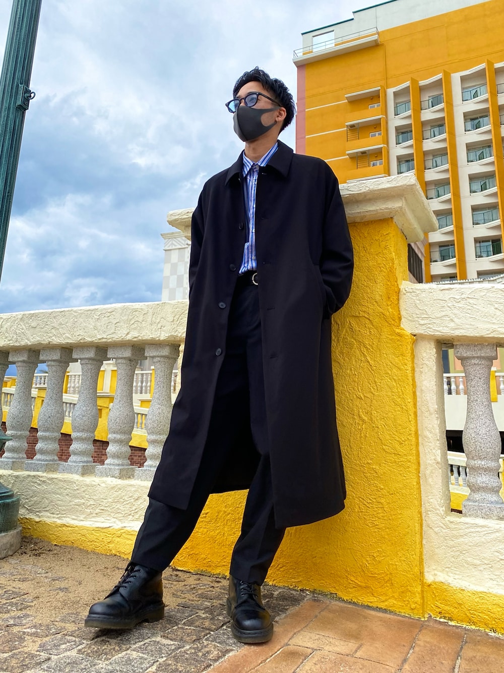 タツロウトナナコのステンカラーコート「『セットアップ対応』ステンカラーコート」を使ったコーディネート