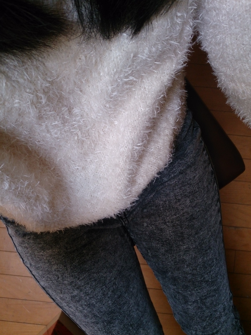 今日は1日家にいるのでゆるーい格好をしております。 白ふわニットは、セールで1900円と激安でした。
