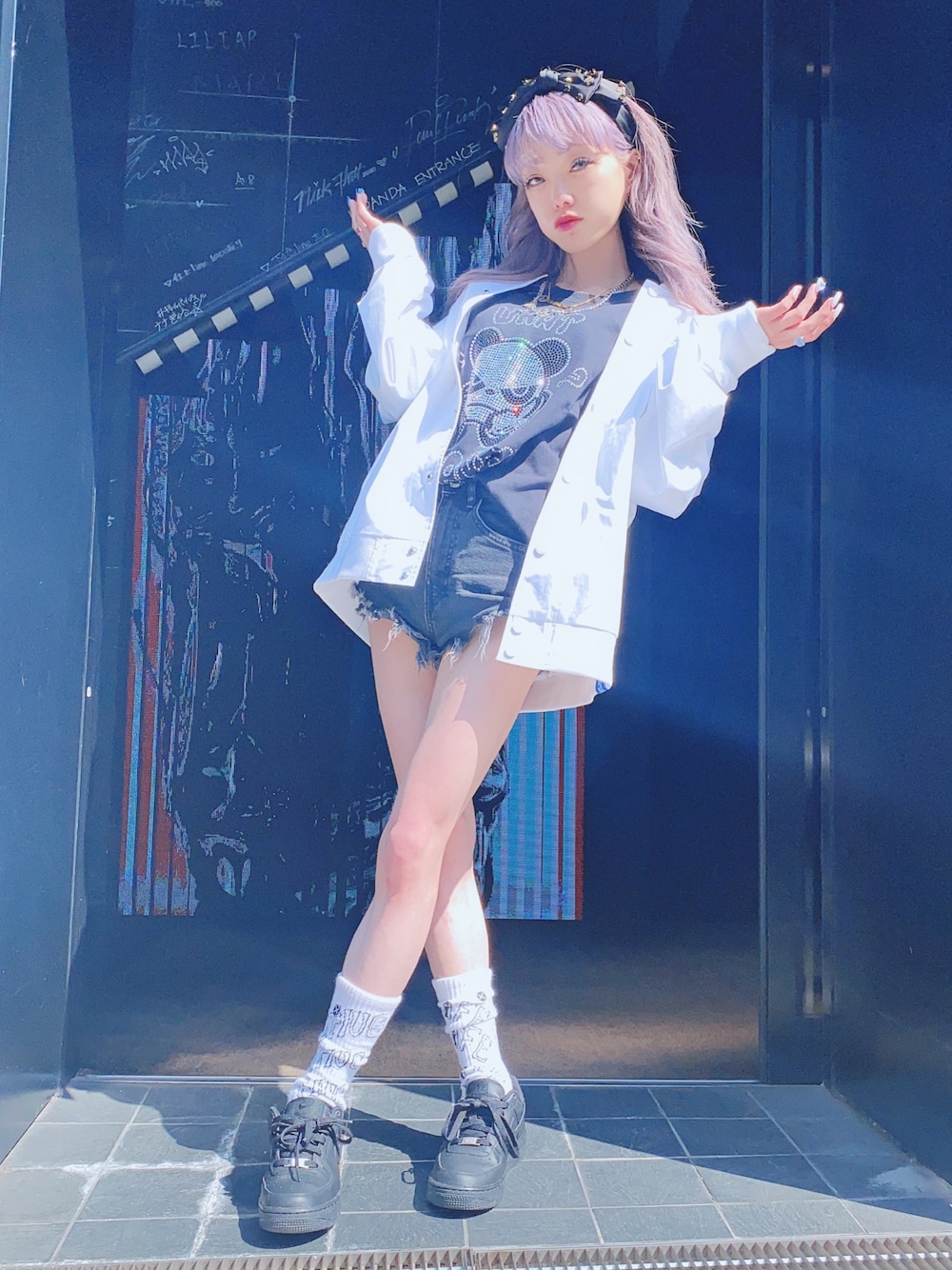 nanagalのスニーカー「ナイキ エア フォース 1 '07 ウィメンズシューズ / Nike Air Force 1 '07 Women's Shoes DD8959-001 Black」を使ったコーディネート