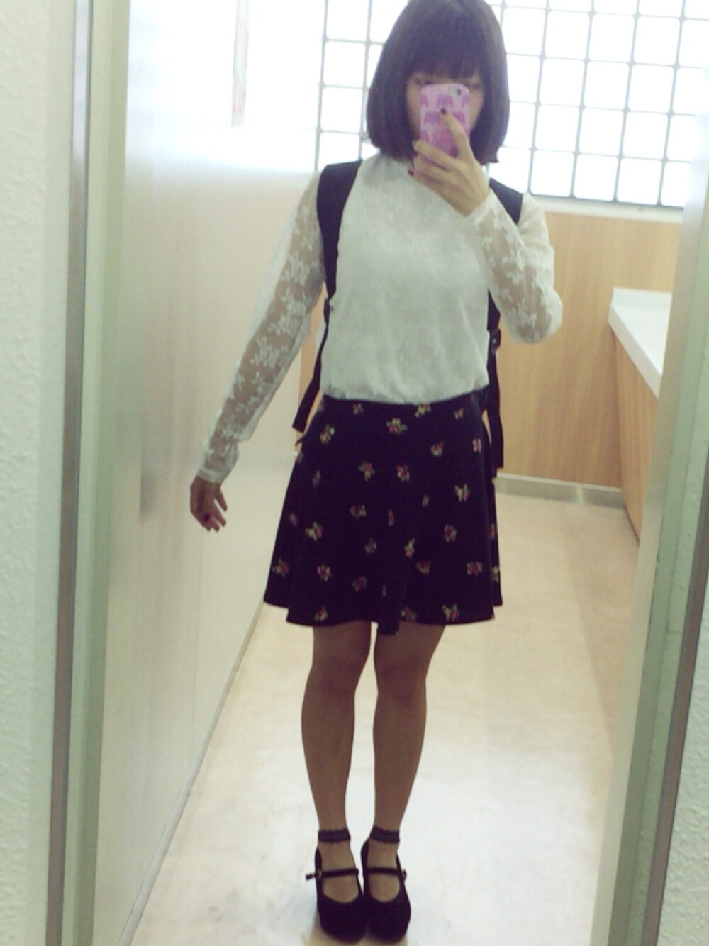 久しぶりにミニスカート履きました💟 ブラウス ¥1900 スカート ¥1000 靴 ¥1900