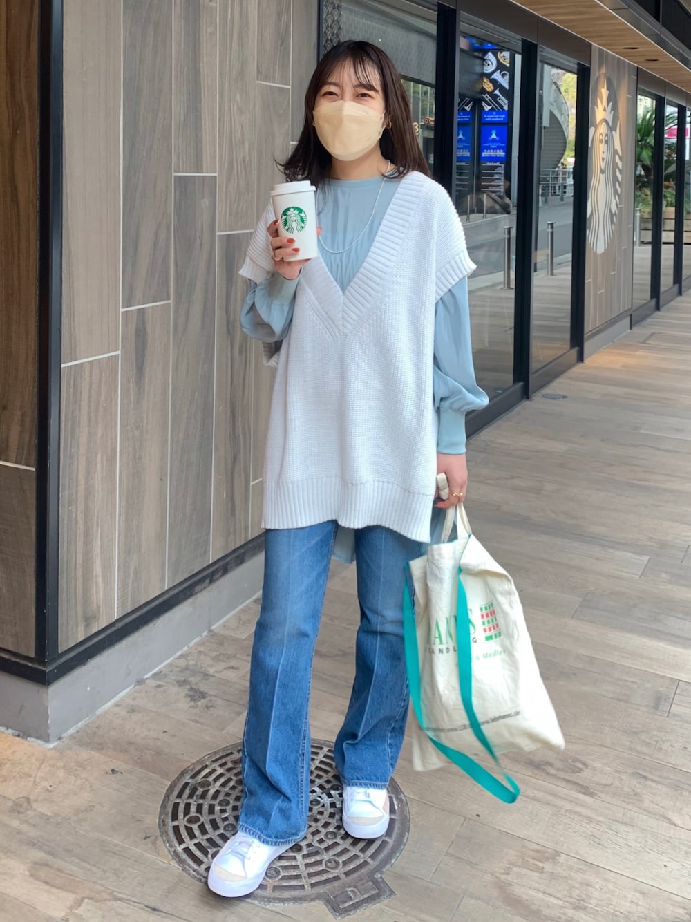 NANAHO_155cm(相互)(SHENERY梅田EST店)のベスト「ラクーンVネックベスト」を使ったコーディネート