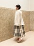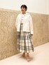 身長:157cm/骨格:ウェーブ/普段のサイズ:SorM/着用サイズ:全て38/パーソナルカラー:イエべオータム 【ウォッシャブル2WAYショートマウンテンパーカー】 サイズ感: 袖のボタンを外すとワイドスリーブにもなる2WAYデザイン。着丈68cm。スカートともバランスを取りやすいショート丈です。 素材感: ナイロン100% お家で手洗い可能です。 着用感: フードが取り外し可能で、ノーカラーでも着られます。後ろにタックが入っており、後ろシルエットも可愛いです。春や秋口に使えるショートアウターです。 【タフタチェックスカート】 サイズ感: 後ろウエストゴムで楽に履けます。着丈が36で78センチ、38で83センチです。 素材感: <ブルー系その他> ポリエステル100% <ベージュ系その他> (表地)ポリエステル100% (裏地)ポリエステル100% シワになりにくい素材。お家で手洗い可能です。 着用感: 人気のタフタ素材を使用したチェック柄のスカート。春の新色が入荷いたしました。タック&ギャザーがたっぷり入ったシルエットがポイント。シンプルなニットやシャツ、ブラウスを合わせるだけで華やかなコーディネートになります。