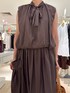 【リンクルタイプライターバルーンブラウス】 サイズ感: 着丈53cm。裾はゴム仕様で締め付け感のないゆるっとしたシルエットです。 素材感: (表地)レーヨン61%、ナイロン39%、(裏地)ポリエステル100% ご自宅で手洗い可能。レーヨンの光沢と柔らかさ、ナイロンのサラッとした風合いが相まった生地にワッシャー加工を施した、表面感のある素材。 着用感: バルーンシルエットが新鮮なリボン付きブラウス。ギャザーを寄せたバックスタイルも可愛いポイント。上品さと軽やかさのある着映えブラウス。同シリーズのスカートとセットアップで着てみました。 【リンクルタイプライターポケ付きスカート】 サイズ感: ウエストはゴム仕様で快適な穿き心地。 素材感:(表地)レーヨン61%、ナイロン39%、(裏地)ポリエステル100% ご自宅で手洗い可能です。レーヨンの光沢と柔らかさ、ナイロンのサラッとした風合いが相まった生地にワッシャー加工を施した、表面感のある素材。 着用感: 大きめポケットが新鮮なタイプライター素材のロングスカート。分量感のあるロング丈がこなれ感のある1枚。上品さと軽やかさがあり、シンプルなトップス合わせでも着映え効果抜群。同シリーズのブラウスとセットアップで着てみました。