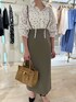 【ドットフロッキーフリルネックブラウス】 サイズ感: 肌離れの良い、程よくゆとりのあるシルエットで、涼しく着用可能。 素材感: (基布)綿100%、(フロッキー)レーヨン100% 日本製。ご自宅で手洗い可能。 着用感: フロッキーでドットプリントを施した透け感のあるコットン素材を使用したブラウス。袖口はゴム仕様で、暑い時期は袖をたくし上げて着用できます。秋はジャケットやニットとの重ね着もおすすめです。 【ウォッシャブルストラップ付2WAYタイトスカート】 サイズ感: ウエストはインゴム仕様で締め付け感を軽減。 素材感: (表地)ポリエステル94%、ポリウレタン6%、(裏地)ポリエステル100% ストレッチが効いたきれいめダブルクロス素材を使用。シワになりにくく、手洗いも可能 着用感:ストラップ付でカジュアルにも着こなせるタイトスカート。身体のラインを拾いにくく、すっきりと大人っぽく着用できるタイトライン。ストラップはボタンで取りはずし可能。シーズンレス素材で、ロングシーズン着回し可能です。