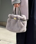 mina(ノーリーズ京都大丸店)のトートバッグ「ひねり金具付きファートートバッグ」を使ったコーディネート