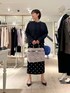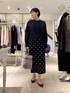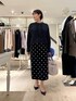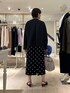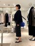 【ウォッシャブルフリルコンパクトブラウス】 サイズ感: 38サイズで着丈56cm。お尻にかかる丈感です。前後差があり、小柄な方でもバランスのとりやすい短めの着丈。 素材感: ホワイト系4:ポリエステル75%、綿20%、ポリウレタン5% ネイビー系3:ポリエステル90%、綿10% ご自宅で手洗い可能です。 着用感: エレガントな華やかさと、甘さのバランスがとれた着こなしを簡単に作れるフリルブラウス。ストレッチの効いた生地と、後ろ身頃中心のボックスタックで、動きやすさもあります。 【ウォッシャブルストレッチドットジャガードタイトスカート】 サイズ感: バックウエストはゴム仕様ではき心地が良いです。 素材感: ポリエステル77%、綿23%、(ポケット袋布)ポリエステル100% 日本製。手洗い可能。日本のジャガード産地でオリジナルで作っているこだわり素材。程よいハリとストレッチ性のある素材で着心地や動きやすさを追求。 着用感: 定番人気ドットジャガードのタイトスカート。細すぎないシルエットと丈感のバランスもポイント。シーズンレスでオンオフ幅広く着回しできます。