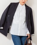 mina(ノーリーズ京都大丸店)のシャツ/ブラウス「【MARILYN MOON/マリリーンムーン】タックフリルストライプブラウス」を使ったコーディネート
