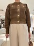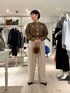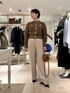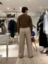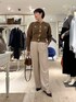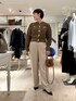 【鹿の子編みクルーネックカーディガン】 サイズ感: 着丈49.5cm。コンパクトなシルエット。 素材感: ポリエステル100% ご自宅で手洗い可能。ポリエステル素材の鹿の子編み。 着用感: ぽってりとした厚みが可愛いショート丈のカーディガン。袖口と裾のリブ幅を長めにすることで、コンパクトなシルエットに。前を閉じて一枚着として、ボタンを開けて羽織りとして着回しを楽しめるアイテムです。 【ウォッシャブルサテンワイドパンツ】 サイズ感: ウエストは後ろゴム仕様ではき心地楽ちんです。 素材感: (表地)ポリエステル100%、(裏地)ポリエステル100% 日本製。ご自宅で手洗い可能。発色が良く軽さがあり、吸水速乾性に優れ、シワになりにくいイージーケア素材。 着用感: シルクの様な光沢感を表現したサテン素材を使用したパンツ。あえてプレスをきかせたきれいめなフォルムに仕上げた1枚。Tシャツ、シャツ、ニットと夏から秋まで長いシーズン着回せます。