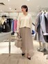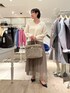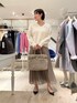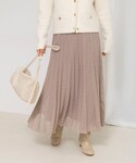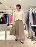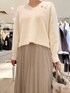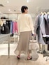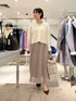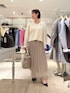 【ヘアリーストレッチVネックプルオーバーニット】 サイズ感: 着丈51cm。お尻にかかる丈感です。 素材感: 毛、(フォックス)49%、ウール48%、ナイロン2%、ポリウレタン1% 着用感: フォックスとウールを使用したVネックニット。寒くなると欲しくなるヘアリーニット。女性らしい印象で、コーディネートを華やかに格上げしてくれます。ちくちく感はなく、柔らかい肌触りです。 【ウォッシャブルラメカットドビープリーツスカート】 サイズ感: 38サイズで85cm。ウエストはゴムで快適な穿き心地。 素材感: (表地)ポリエステル100%、(裏地)ポリエステル100% ご自宅で手洗い可能です。 着用感: ゴールドのカットドビーが華やかなプリーツスカート。クロ以外の2色はノーリーズでしか買えないオリジナルカラー。年末年始のおでかけなど、少し華やかさが欲しいシーンにもおすすめのスカートです。
