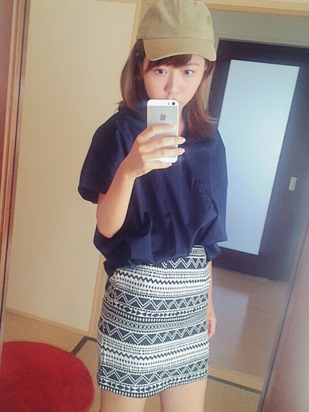 今日は、暑かったので、キャップをかぶりました👒トップスがシンプルなので、スカートは、柄物であわせて、全体的にカジュアルさをだしてみました‼︎