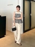 大人のモノトーンスタイルは 花柄がオススメ☑️ ワントーンのトップスとパンツに 主役級のビスチェで 休日のお出かけコーデが完成! まとめ髪にすることで、 骨格ストレートさんでも上半身がスッキリして見えます👀 ビスチェと柄を使っているので 小物はミニマムに◎ 合皮バッグでデートコーデにも🤍