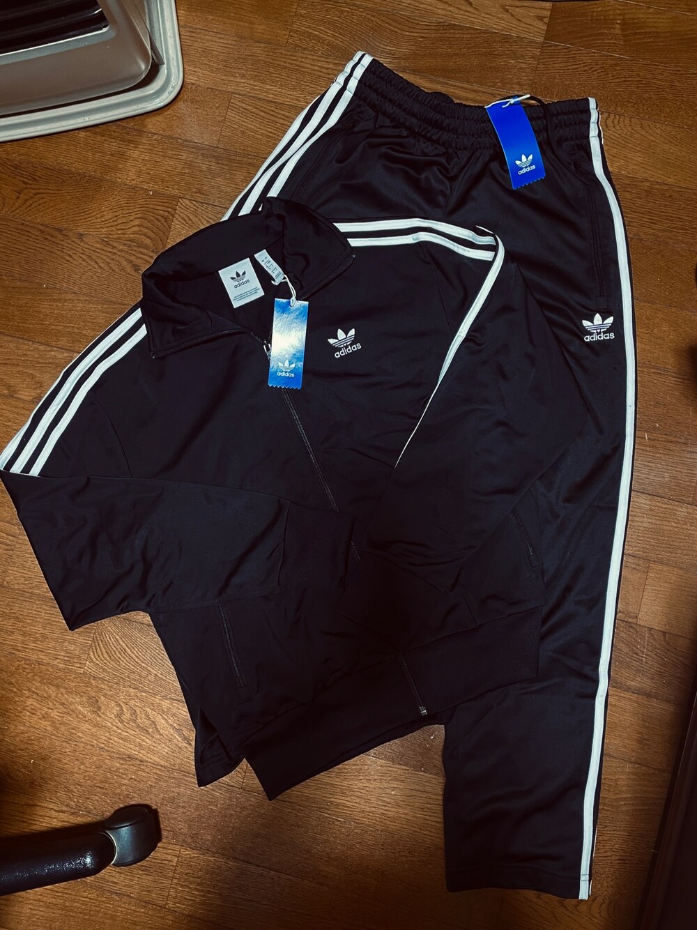 ブラック系のジャージを着用したメンズの冬コーディネートの1枚目の写真