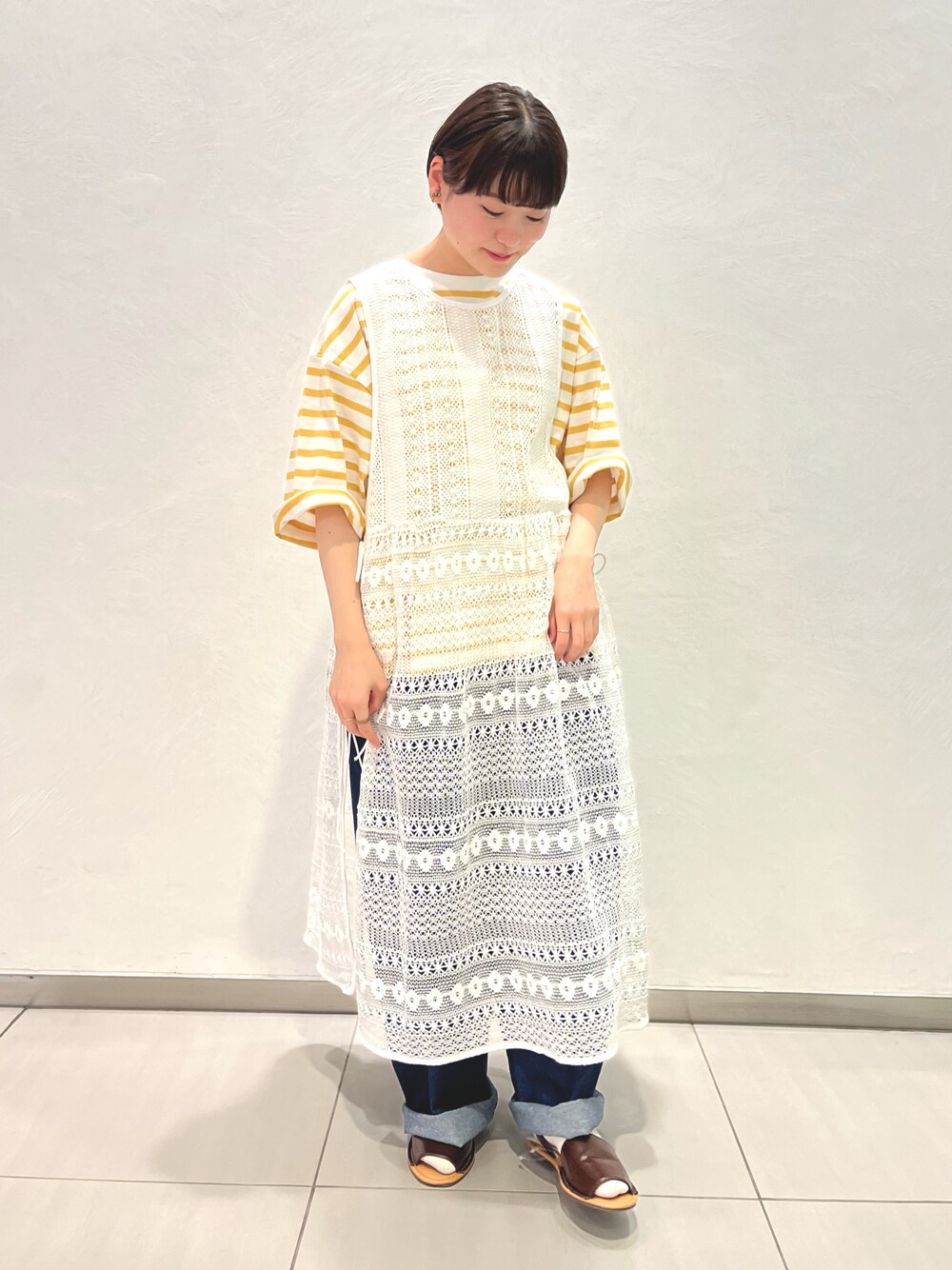 総レースのワンピースをカジュアルに 合わせました♩ ボーダーのカットソーはゆるっとした形が とてもかわいいです🍋