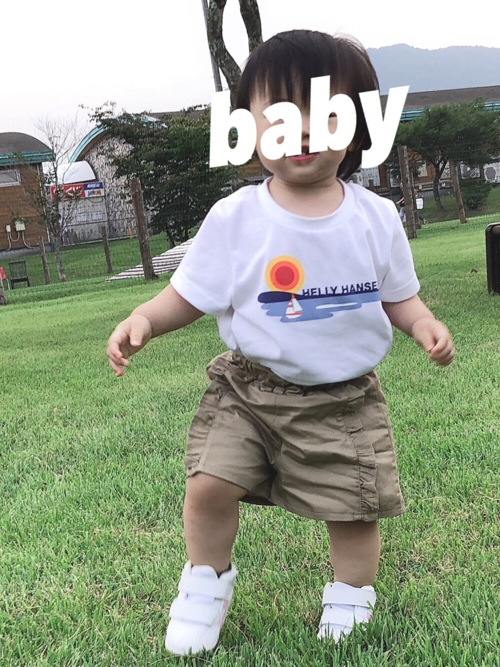 家族3人お揃いコーデのTシャツです✨ キッズサイズは100㎝からしかお取り扱いないですがなんなく着れました❤️ さすがにTシャツ1枚だとワンピースになってしまうのでハーフパンツインしてダボっときてる感じにしました😆 とっても可愛い🌷