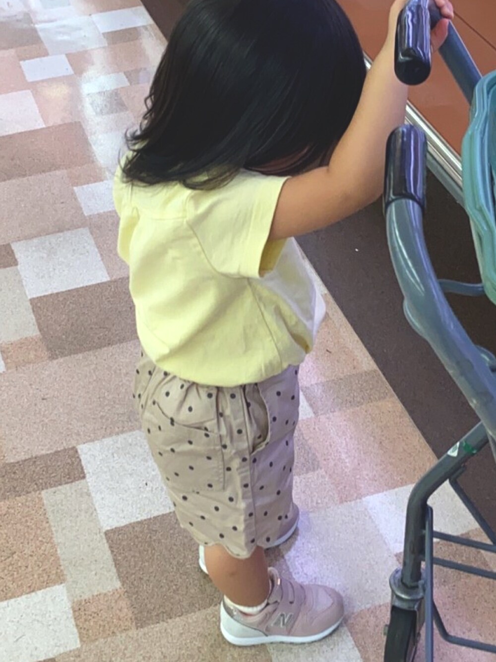 近場に出かけただけなのでシンプルで動きやすい格好に! それでも可愛らしさは出してみたよ😃 ベージュ×イエローも合うから可愛い❤️ TシャツはアイスT着てます☀️😚 ・ ・ 身長92cm tops...110cm pants...100cm sneaker...15.5cm 着用