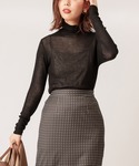 オールブラックの秋コーデ🍁 instagram→ @nanami73_n タートル -------------------- 透け感:あり 裏地:なし 伸縮性:あり 生地の厚さ:薄手 ------------------- サイズ感:ぴったり 素材感: 薄手のシアーニット 着心地:ちくちくしなくて○ 特徴:程よく透けます、インナーは私物なので必須