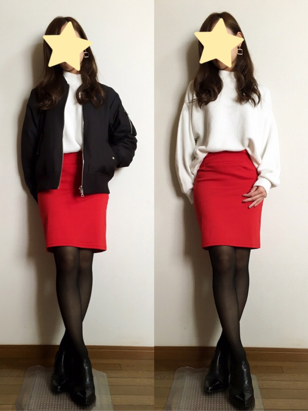 ニットはあえて大きめ! 赤いスカート欲しくてアウトレットでお安くget🙌💖