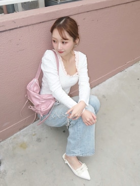156cm 骨格ウェーブ / イエベ春 カジュアルコーデにガーリーさをプラス⊹₊⟡⋆ 取り入れやすいけど一癖あるアイテム が大好物です✌︎ . Instagram/TikTok▶︎ @___nanami11