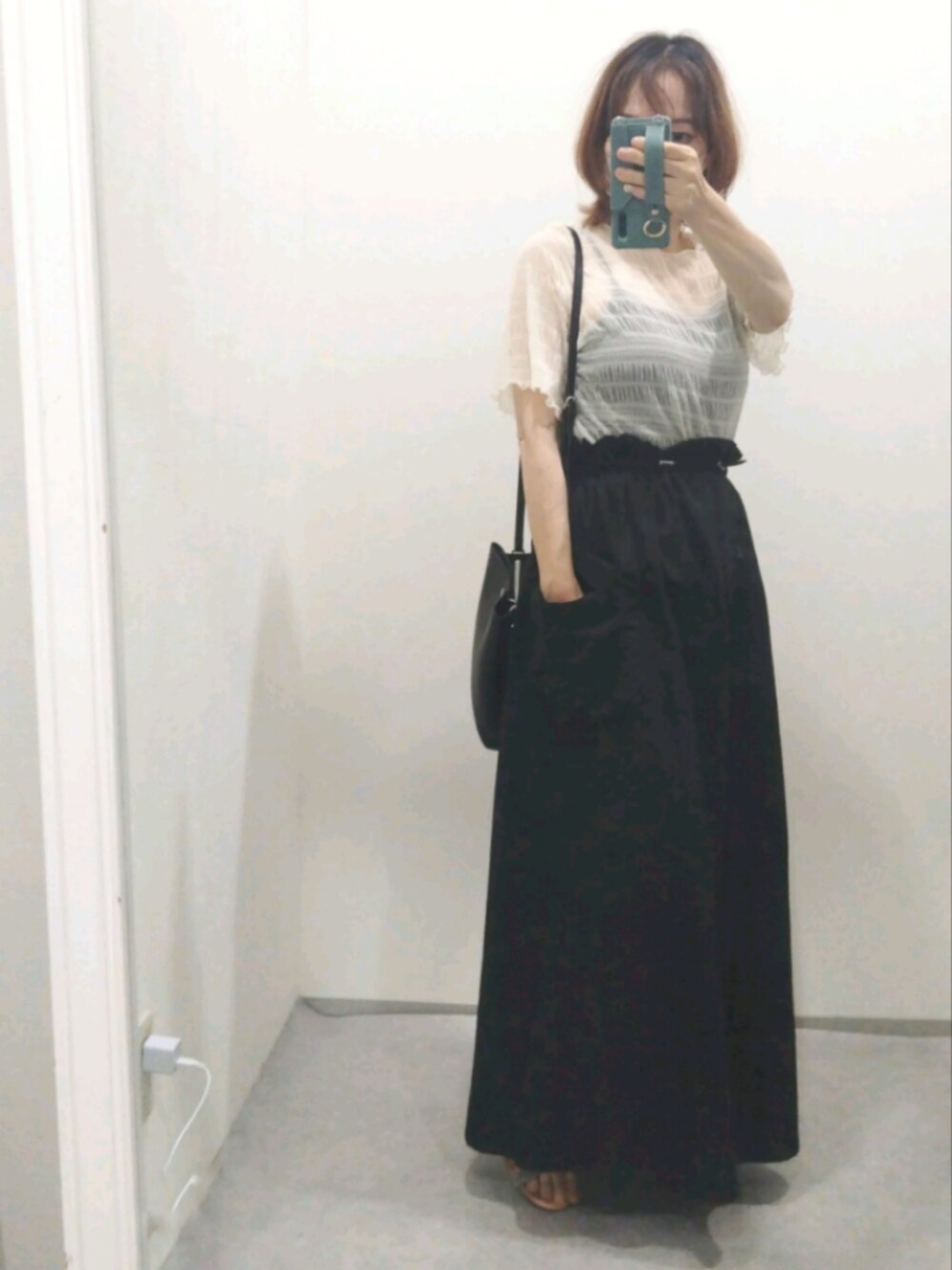 ご覧いただき、ありがとうございます すっかり気に入ったシアートップス セットのインナーではなく、黒のブラトップをインにして涼しさMAX♪ 2枚目、3枚目はセットの同色インナーをあわせています カーゴスカートは、ウエストのドロスト部分がフリフリしているところがかわいい 大きなポケットもうれしいところ サラッとした表面感が特徴のナイロンのテック素材で 夏でも快適なはき心地◎ 身長:156.5cm 骨格:ストレート