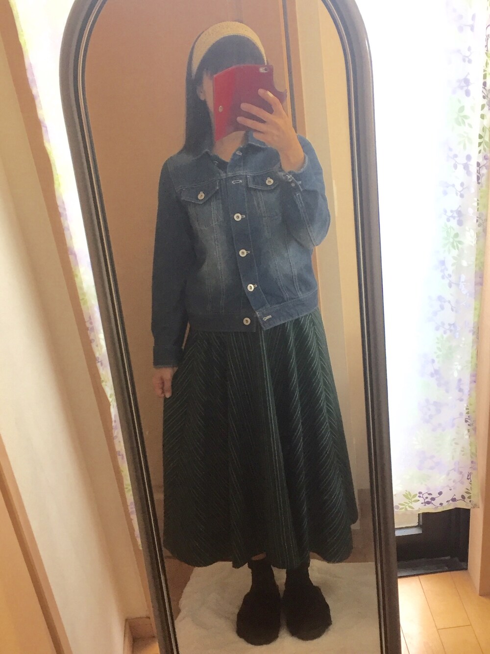 久しぶりのスカートです😊✨ このスカート、あんまり履いてなかったんだけど、デニムジャケットに合わせたら可愛いかも‼️ なーんて😁