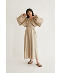 ベージュ系のワンピースを着用したレディースの冬コーディネートの1枚目の写真
