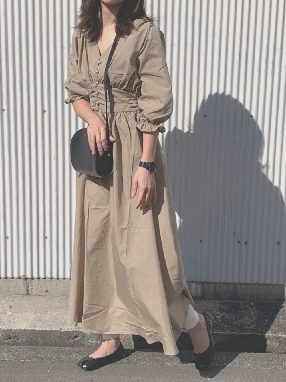 NANAのワンピース「ウエストギャザーロングワンピース」を使ったコーディネート