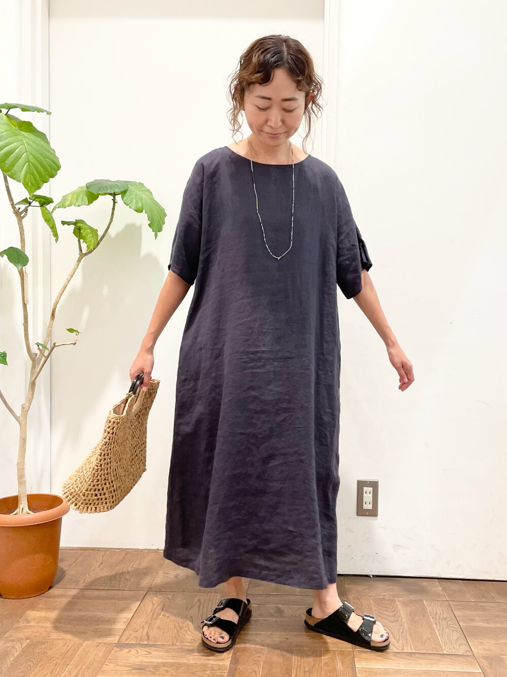 サラッと1枚で着られる リネンワンピース👗 涼しくて着心地抜群です〜