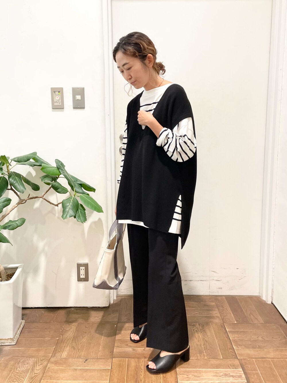 ニットベストを使った、レイヤードコーデ⚫️ モノトーンでまとめました🦓🦓🦓