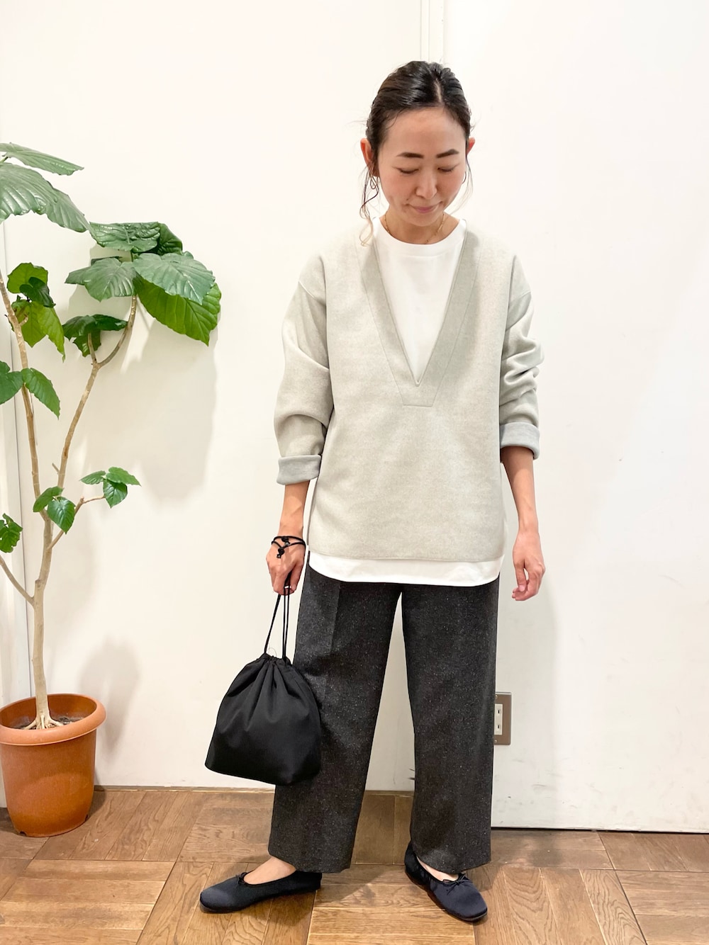 深Vネックにカットソーをレイヤードすることで、今年らしいコーディネート◎ フリースのような素材感で、軽くてあたたかいです😌😌