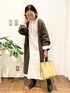 シャツワンピースにロングカーディガンを合わせて、ゆるっとコーデ💡カーディガンはモコモコであったかい〜🐻