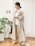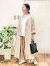 リネンのチェスターコート。 袖口をグルグルっとまくって手首を出すと、 低身長の方でもスッキリ着ていただけます。