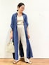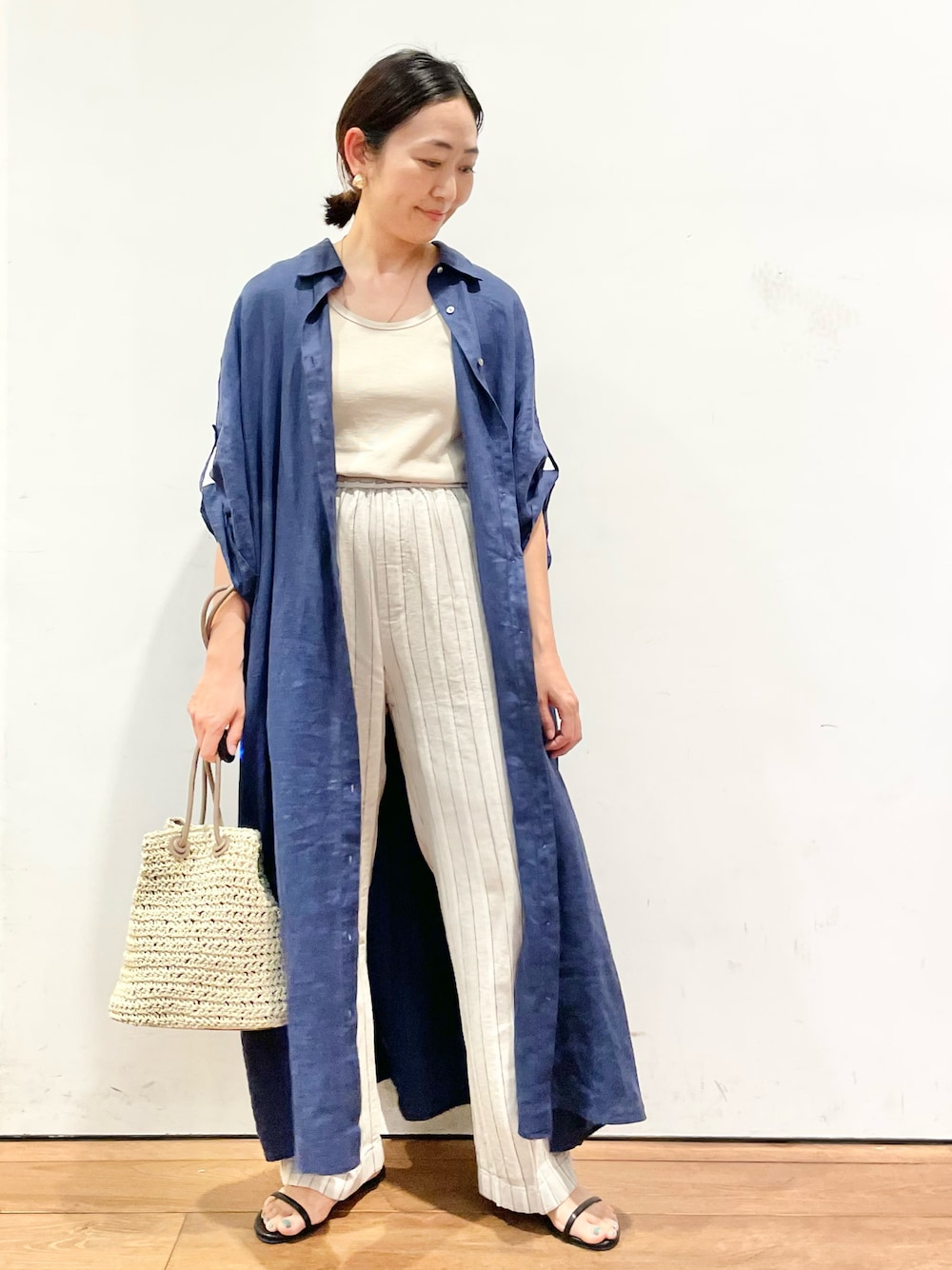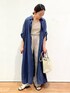 リネンのシャツワンピース💙羽織りとしても使えて、すごく便利です。FORK&SPOONのストライプのパンツも太すぎないので、スッキリ見せてくれます◎