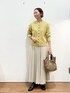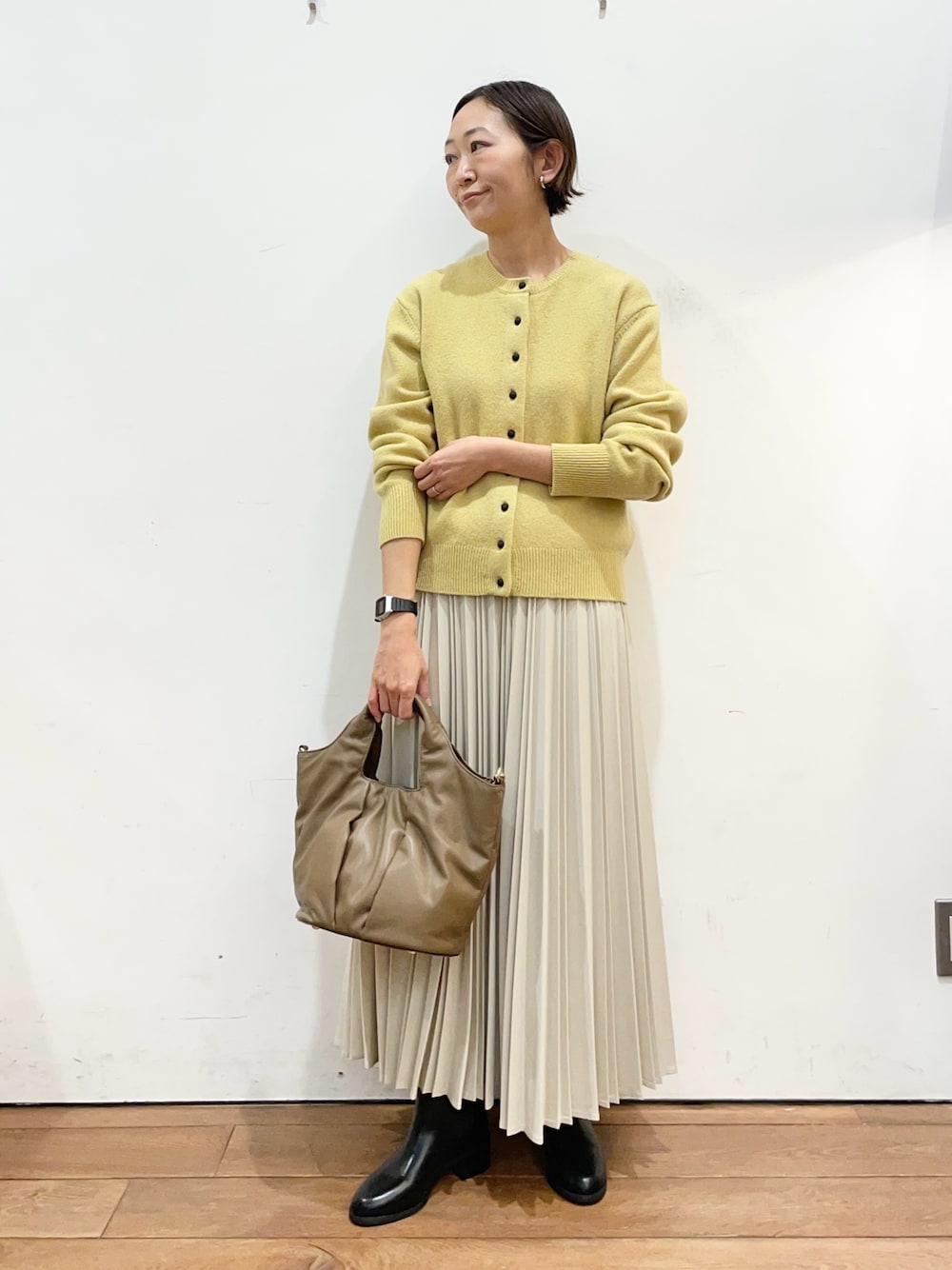 いつもご覧いただき、ありがとうございます😊 イエローが目を惹くカーディガンは、コンパクトなサイズ感でとても使いやすいです◎ サテンのボタンがアクセントになって可愛いです✨ スカートも程よい光沢感で、上品な印象でお使いいただけます。