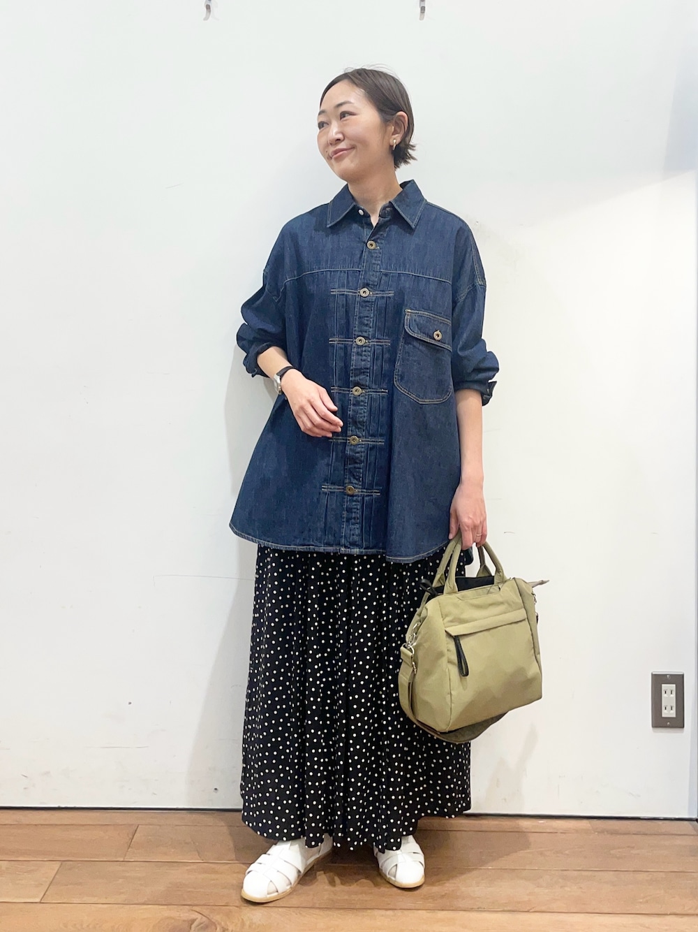 いつもご覧いただき、ありがとうございます😊 デニムシャツはゆったりとしたサイズ感で、 羽織としても使いやすいです◎ かぐれのスカートはウエストもゴムなのでストレスフリーで履いていただけます✨ 流行も関係なく、長く使えるアイテムです☺️