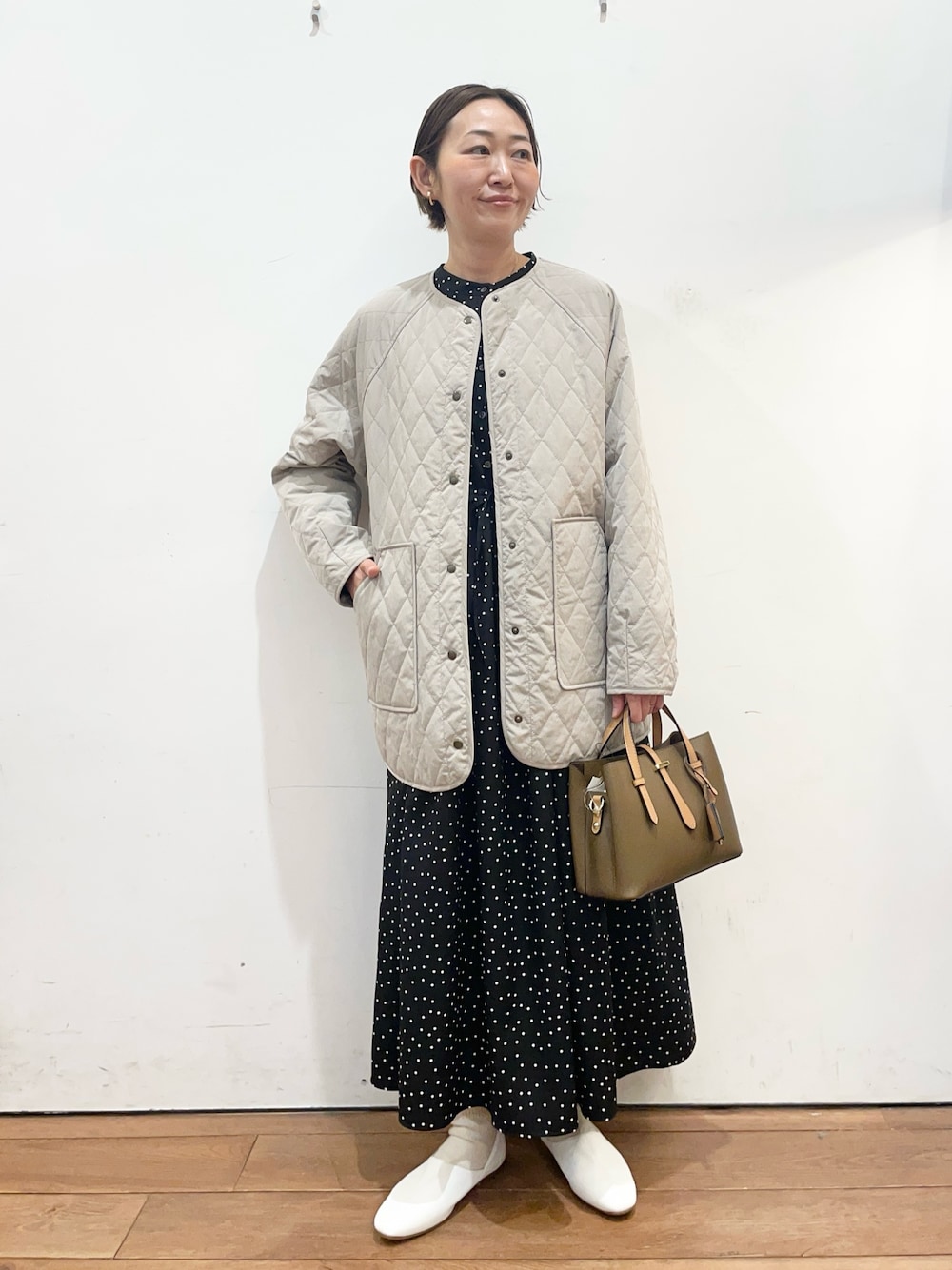 いつもご覧いただき、ありがとうございます✨ ワンピースは1枚でサラッと着られて便利です💡 小さめのドットなので主張しすぎず、 長くお使いいただけます。 ジャケットは軽くて保温性もあり、 幅広いシーズンで使えるアイテムです◎ ちょうどヒップまで隠れる丈感で、安心感があります😊