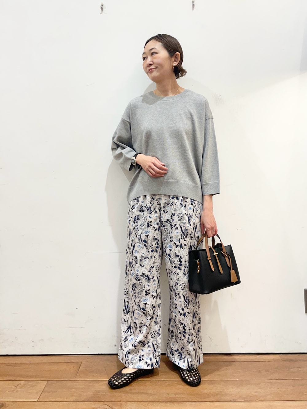 いつもご覧いただき、ありがとうございます✨ ニットはラメが入っており、光沢感がありキレイ見えします☺️ 袖が短めで手首が出るので、スッキリ着られます。 パンツはサラッとしていて履き心地抜群です◎