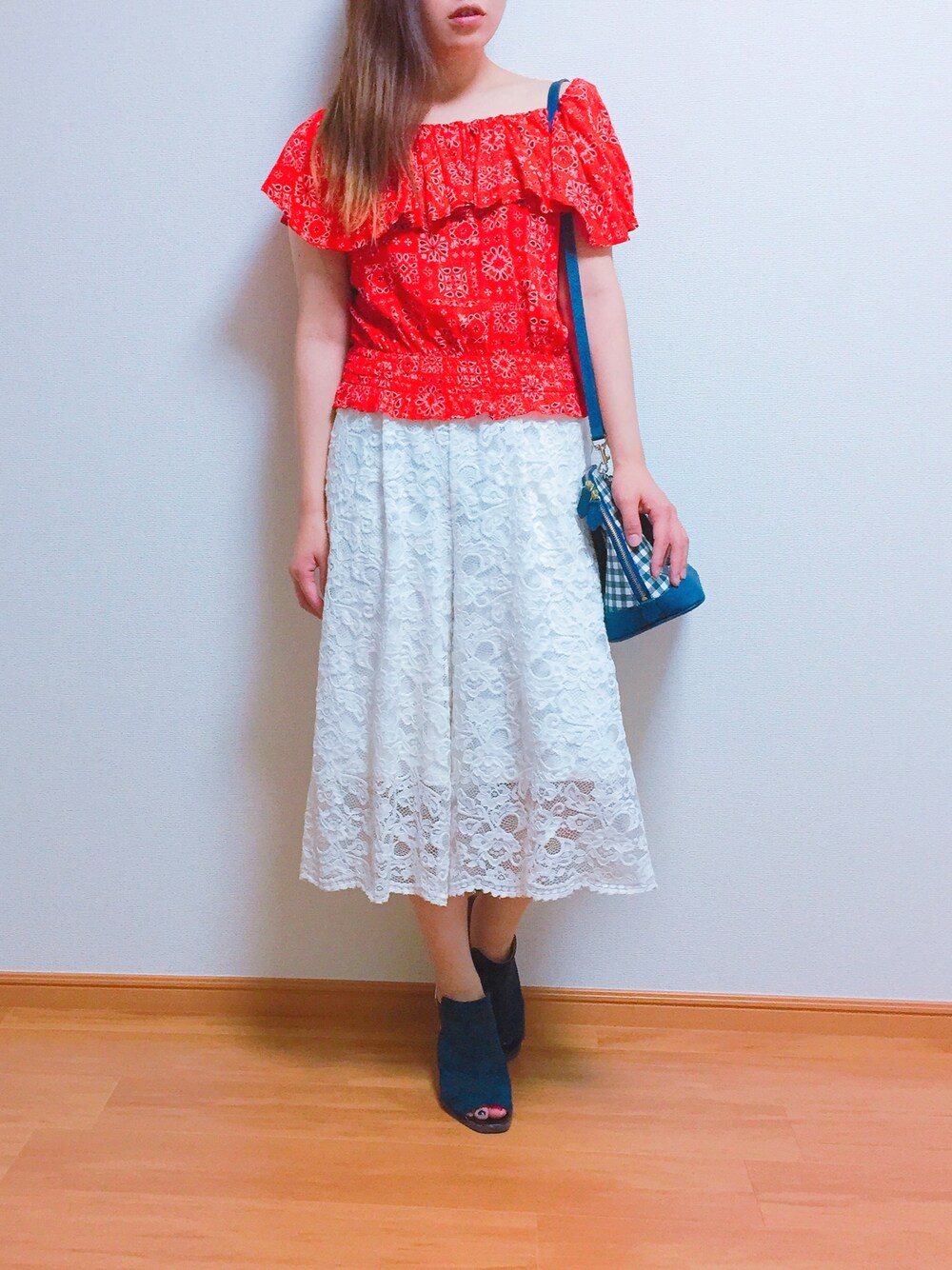 梅雨ってジメジメしてで蒸し暑くて嫌ー(*^^*)だから原色トップスで気分転換上げる💕雨上がりだけどサンダル履いて出かけようコーデ*\(^o^)/*