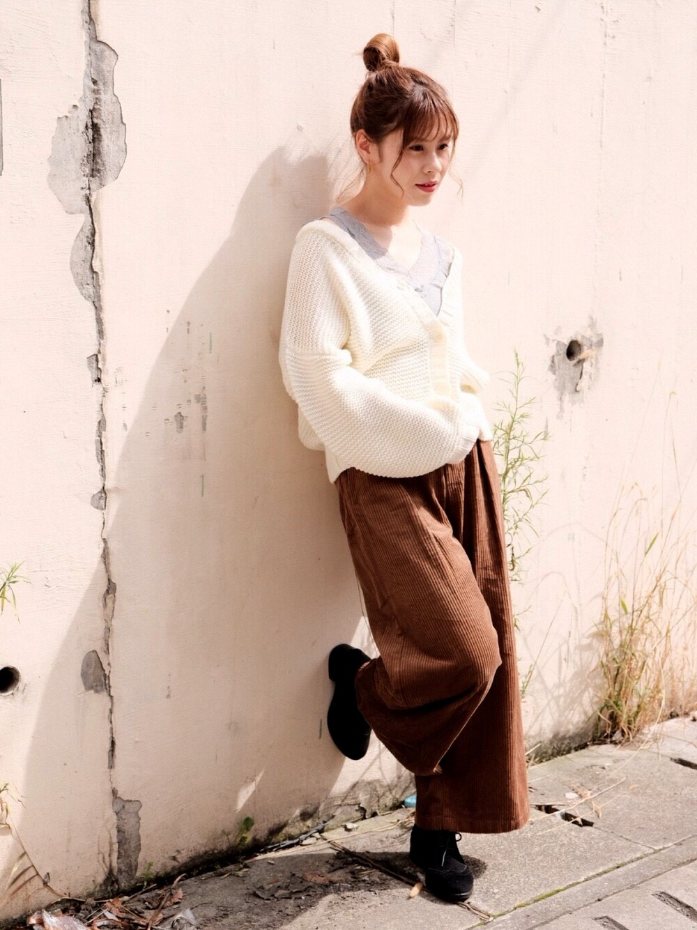 涼しかったので今年初のニット…❤️ この前ゲットした白カーデを初おろしです◎ ゆるーいコーデにしたいときはお団子がマストですね!メガネもかければよかったなあ…!