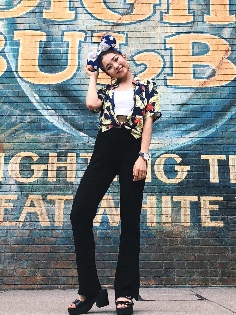 2週連続ディズニー幸せすぎ! この日は暑すぎて黒いパンツはお尻が焦げるかと思いました〜〜😂😂 アロハシャツの季節がきましたね〜🌺 やはりこのパンツ脚長効果抜群で最高❤️