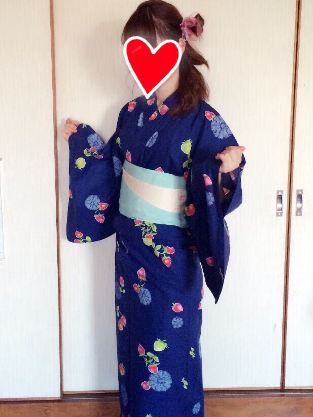 地元の花火で浴衣きましたー! サイドハーフアップにしてリボンと作ったかんざしつけました( ˙꒳˙)