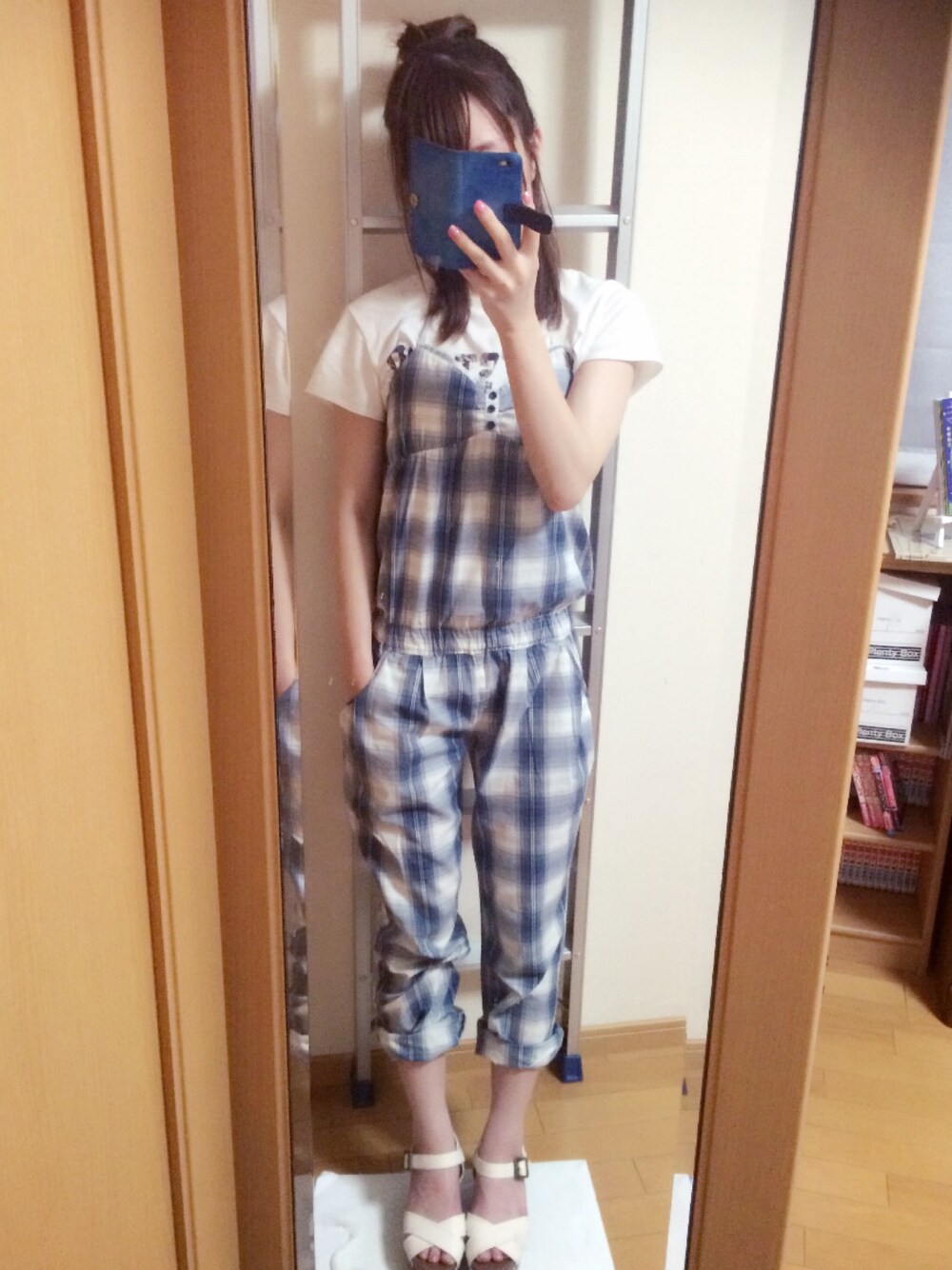 昔かったオールインワンを久しぶりに着ました! 背中のリボンがかわいいですよね(*´艸`*)