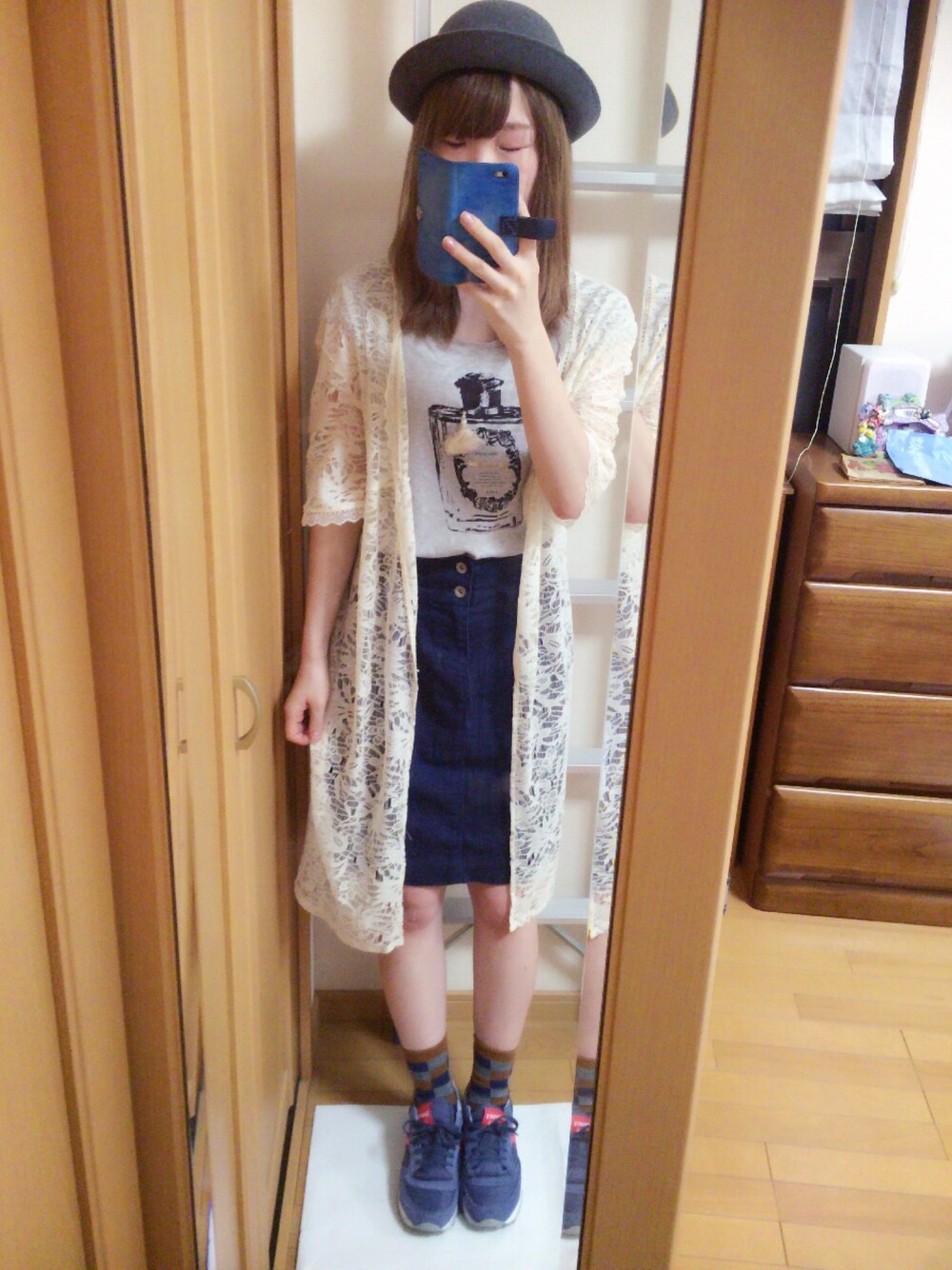 hanaのジャケット/アウター「(GU)レースロングカーディガン(半袖)」を使ったコーディネート