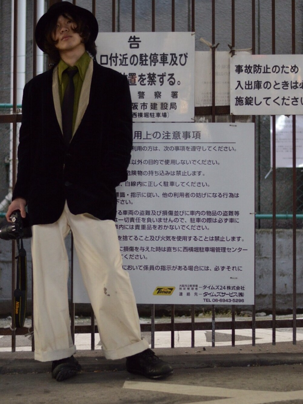 Vintageのyohjiのジャケットに50's〜60'sのボトムとシャツ。 古いものだからこその雰囲気が好きです^ ^