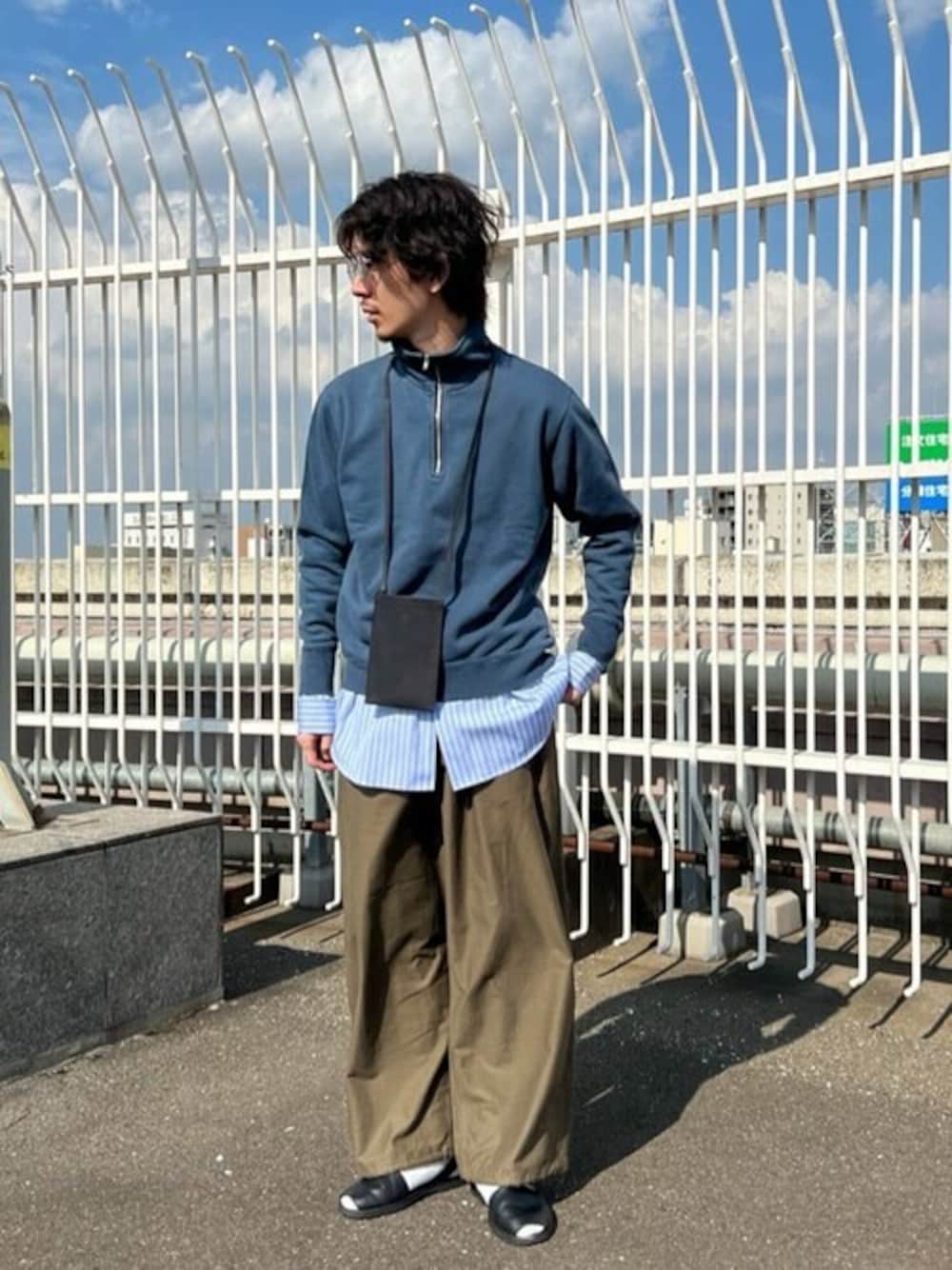 スウェットにシャツをレイヤードのスタイルはいまや定番中の定番ですが、飽きがこないのも良い所です。 スウェットのサイズ感をあえてジャストサイズにしてボリュームのあるパンツで強弱をつけました! 小物は黒で統一しこなれ感を◯ それではご参考までに(^^; もっと涼しくなれーーーーー