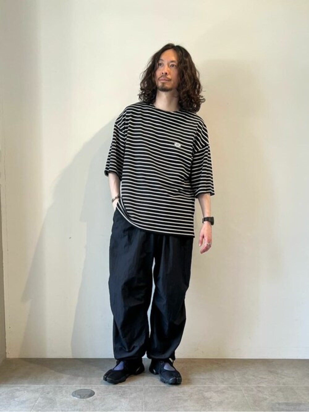 全体的にブラックをベースにし、アーバンライクなボーダー柄コーディネートを目指しました。